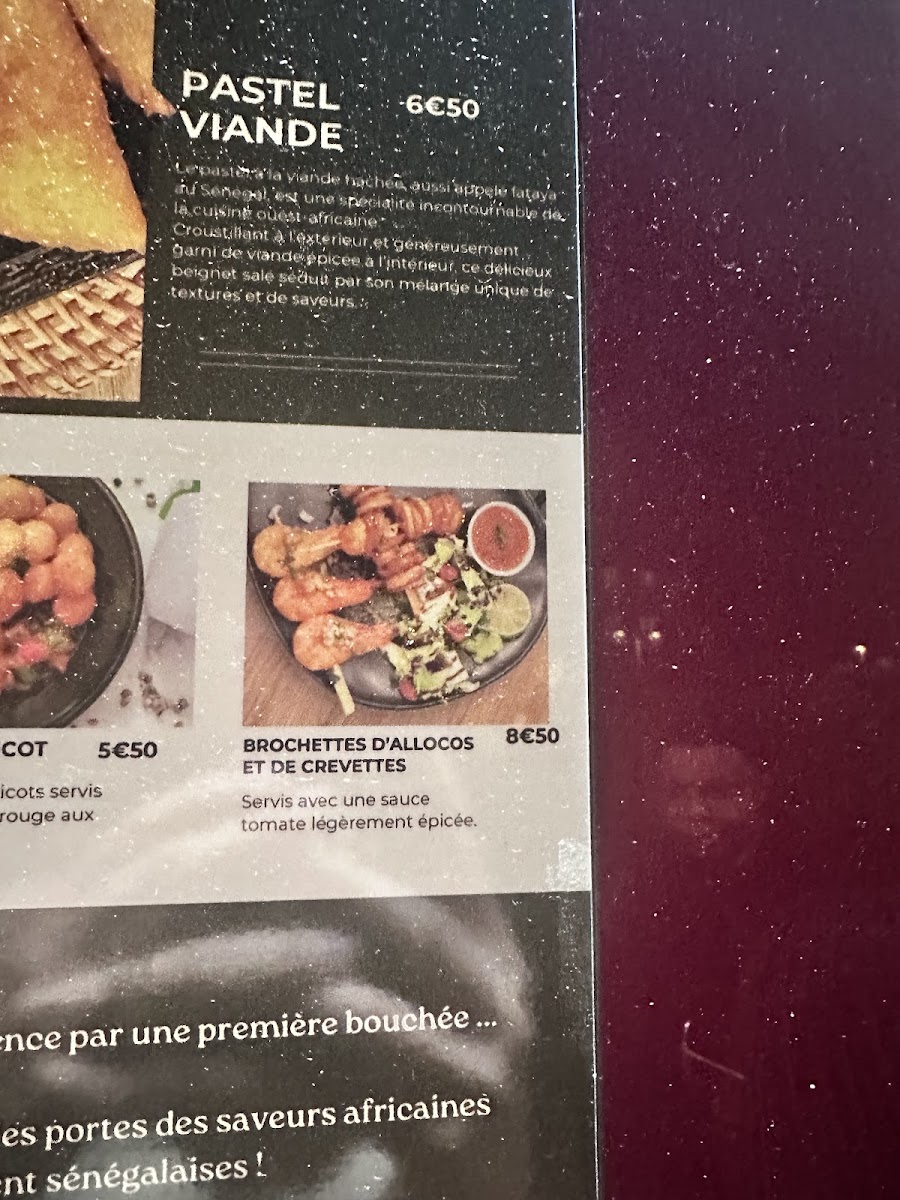 “ Délicieux repas. Copieux et savoureux. Le cadre est magnifique et l’ambiance sympa. Nous avions pris un bissap, des pastels viande, un poulet thieb et un poulet mafé. Un vrai régal. Nous reviendrons avec grand plaisir. Une adresse à tester! ”